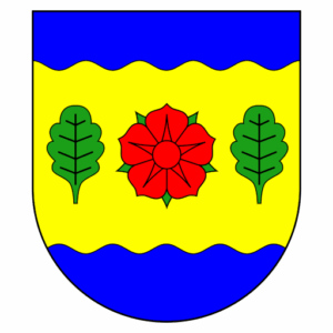 Zwischen den Meeren: Der blaue Wellenrand oben symbolisiert die Schlei, der untere die Ostsee. Loose liegt genau in der Mitte – dafür steht die rote Rose im Zentrum des Wappens.